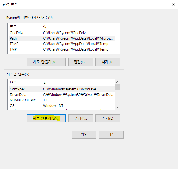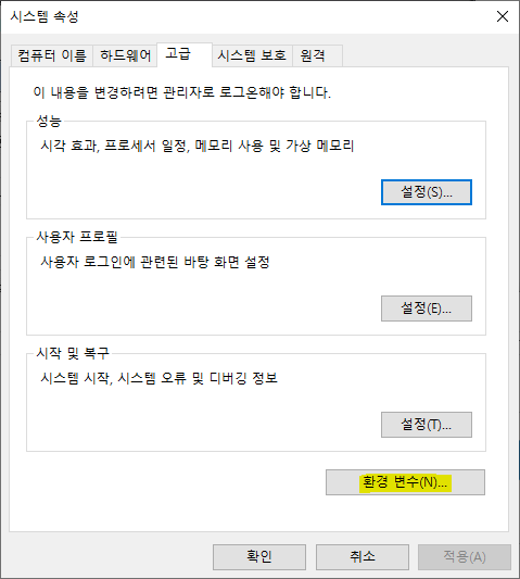 위의 경로로 가서 고급 시스템 설정을 클릭