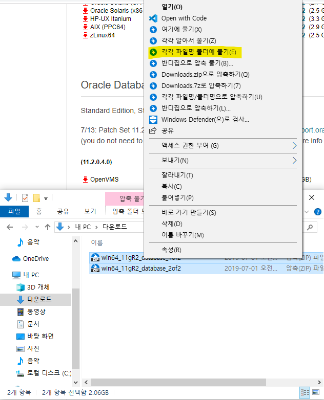 그리고 쪼금 내리면 Oracle Database 11g Release 2 여기에서