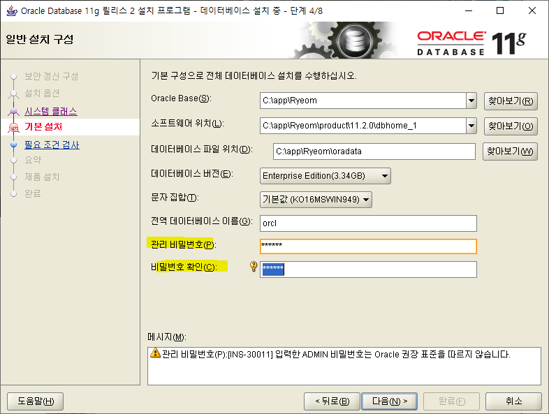 오라클 Oracle 11g 설치하기