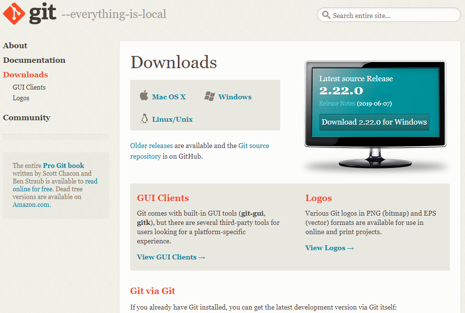 Downloads Mac OS X Windows Linux/Unix Older releases are available and the Git source repository is on GitHub. GUI Clients Git comes with built-in GUI tools (git-gui, gitk), but there are several third-party tools for users looking for a platform-specific