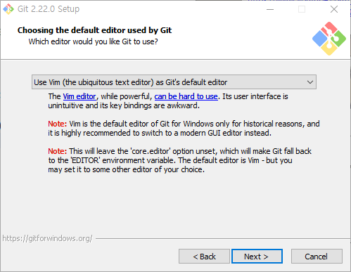 이거슨 깃의 디폴트 에디터를 설정하는 곳이다.