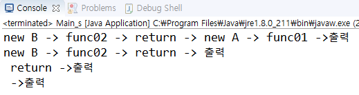 System.out.println("/* new B -> func02 -> */ return -> /* new A -> func01 */ ->출력");