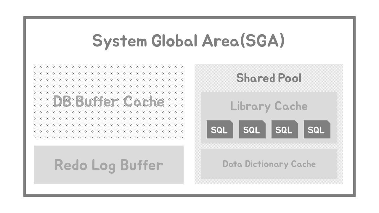 SAG(System Global Area) : Server Process와 Background가 공통으로 Access하는 데이터와 제어구조를 Caching하는 메모리 공간
