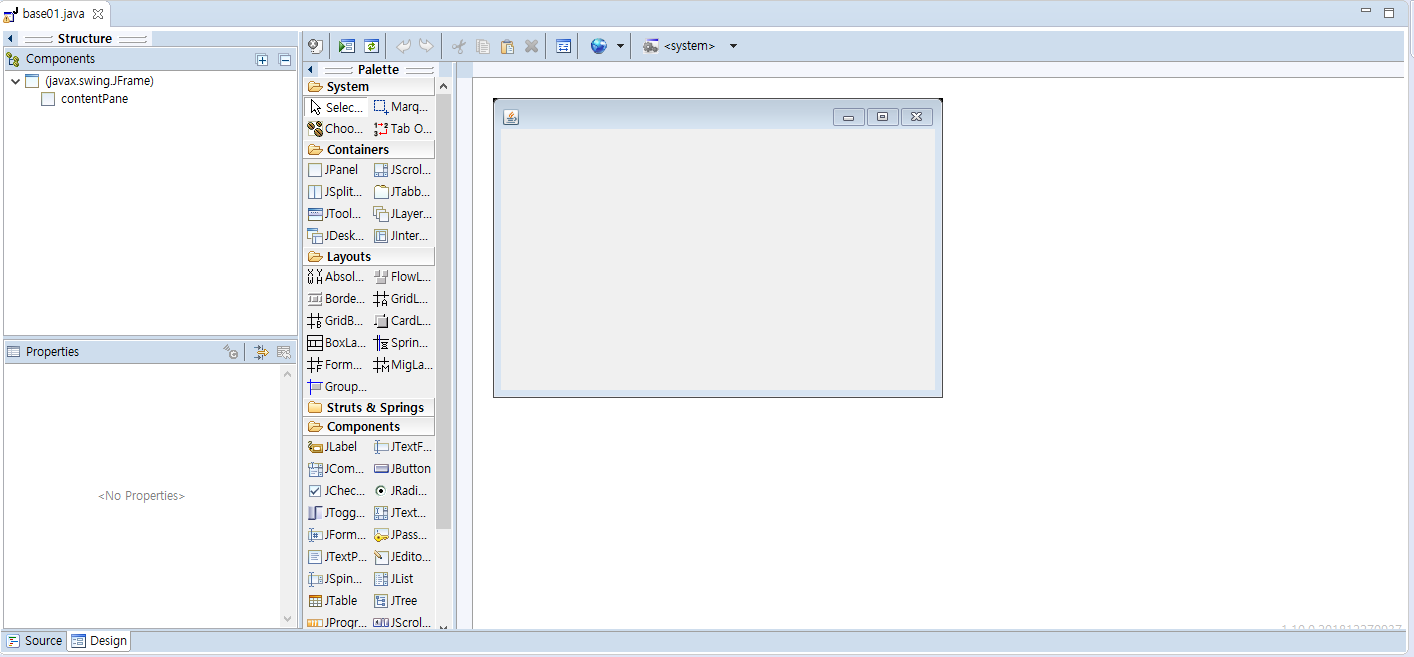 간단하게 base01이라는 프레임을 만들었어요 그밑에 source와 design이 있습니다.