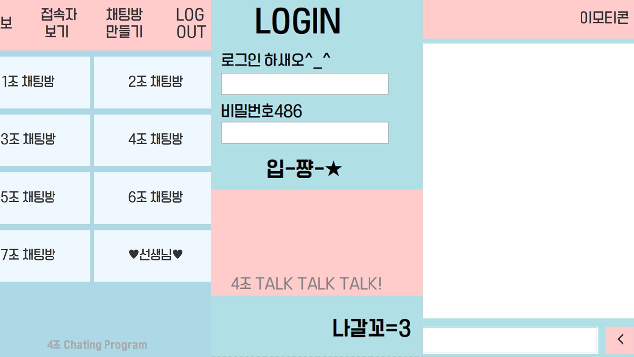 참고로... 위에껀 예전에 했던 chatting 프로그램 gui입니다.